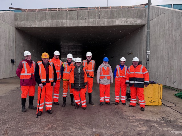 - 14:00-15:00 uur bezoek aan de tunnel en de bouw van het viaduct (het is verplicht om veiligheidsschoenen/-helm/-broek en -vestje of -jas aan te hebben)