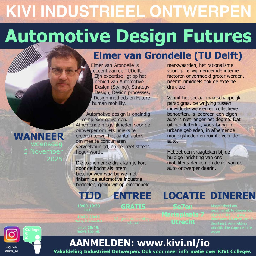 Elmer van Grondelle is docent aan de TUDelft. Zijn expertise ligt op het gebied van Automotive Design (Styling), Strategy Design, Design processes, Design methods en Future human mobility.