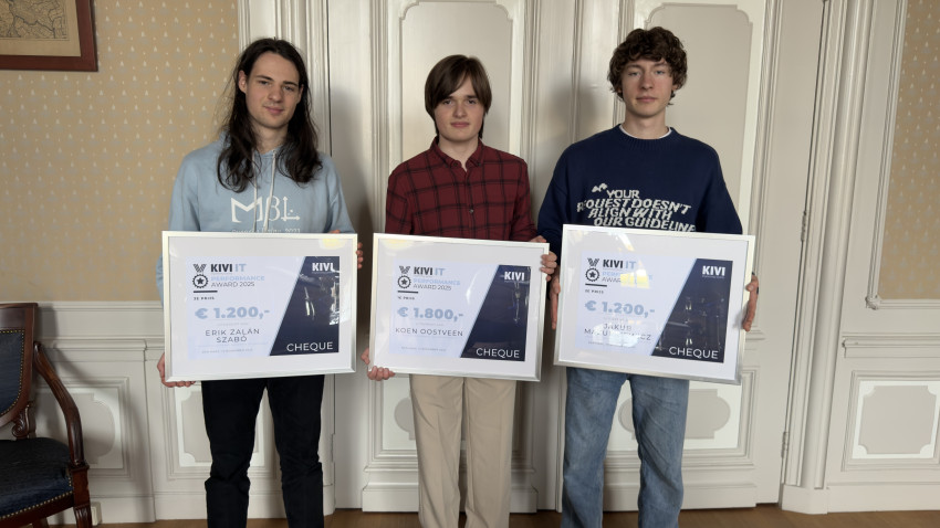 Op 12 september vond in Den Haag de feestelijke eerste uitreiking plaats van de KIVI Performance Awards, op initiatief van KIVI afdeling Informatica. Tijdens een compacte ceremonie op het KIVI-hoofdkantoor werden drie uitzonderlijke tweedejaars Technische Informatica en Technische Wiskunde studenten in het zonnetje gezet voor hun uitmuntende studieresultaten in het studiejaar 2024–2025.