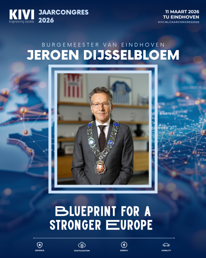 KIVI is verheugd te kunnen aankondigen dat Jeroen Dijsselbloem, burgemeester van Eindhoven, het KIVI-jaarcongres 2026 opent met de eerste keynote.