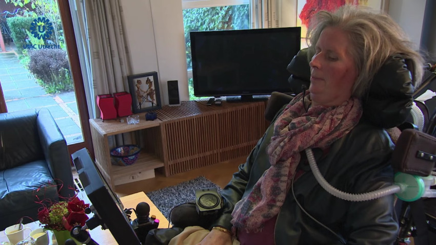 Vrouw bedient tablet met hersengolven