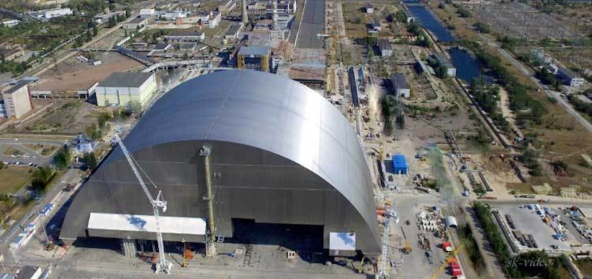 Sarcofaag Tsjernobyl rijdt naar kerncentrale